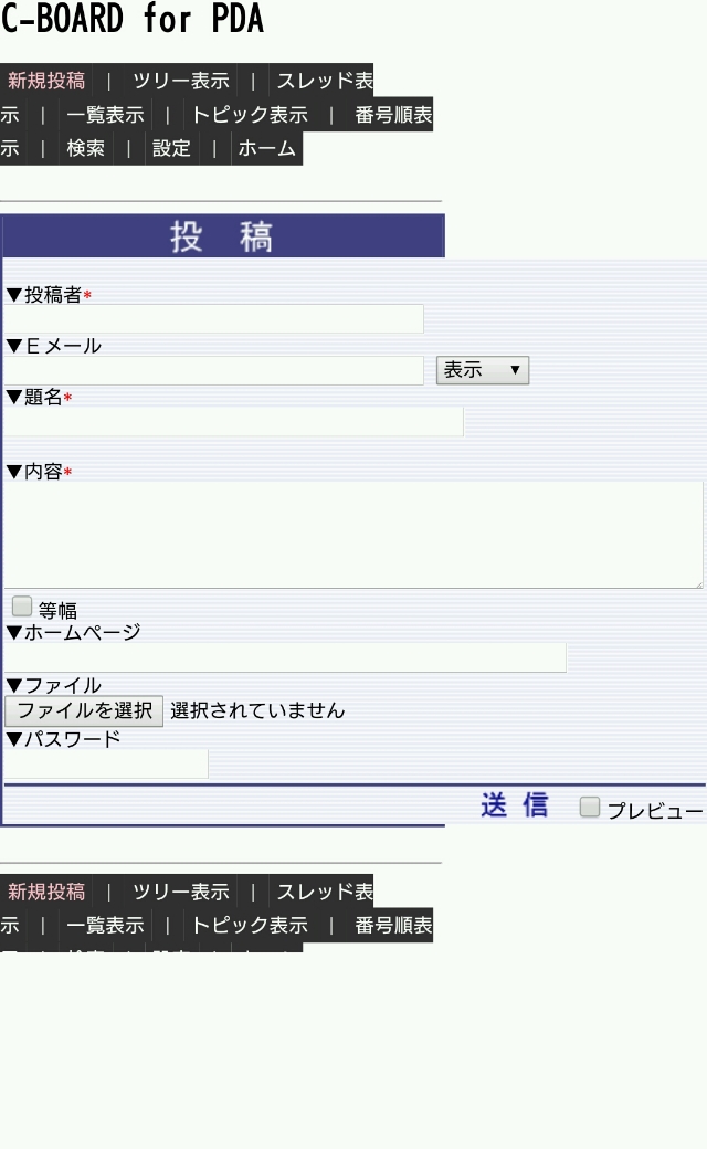 スマホで表示したら、メニューバーならびに、投稿画面のデザインが崩れています。